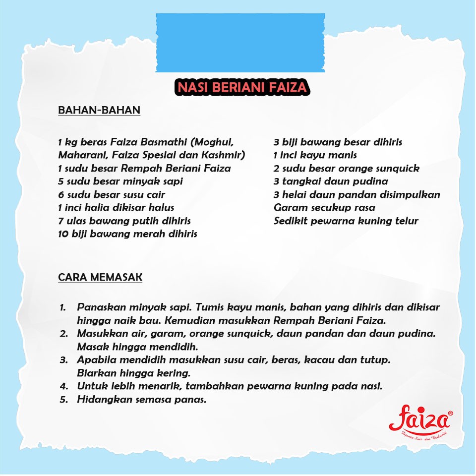 Nasi Beriani Faiza Bahan Bahan 1 Kg Faiza Marketing Sdn Bhd Facebook