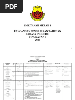 Rancangan Pengajaran Tahunan Rpt 2018 Tingkatan 5 Education Guru