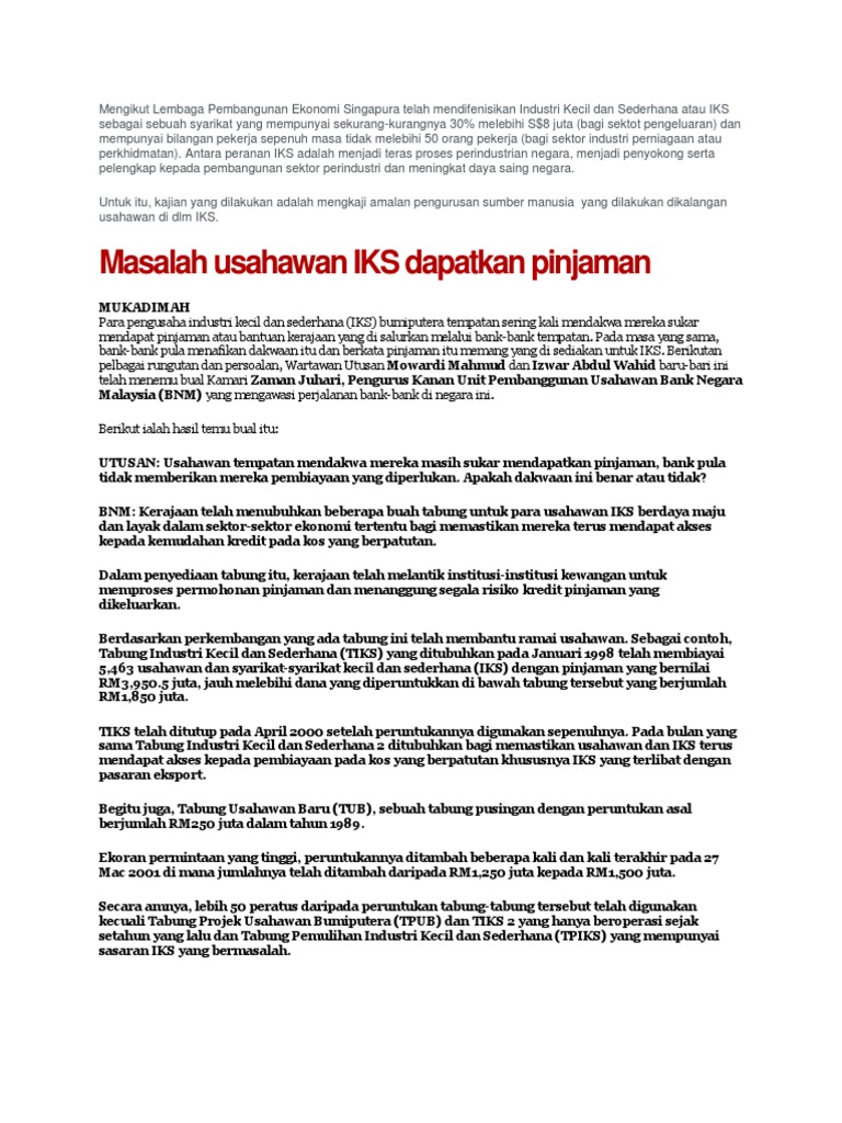 Isu Isu Kewangan Industri Kecil Dan Sederhana Iks