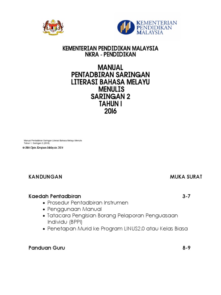 Manual Pentadbiran Instrumen Literasi Bm Menulis Tahun 3 Pdf Pdf Document