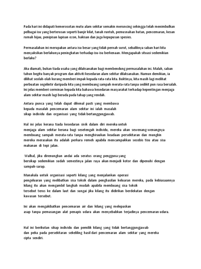Contoh Karangan Alam Sekitar Rasmi B