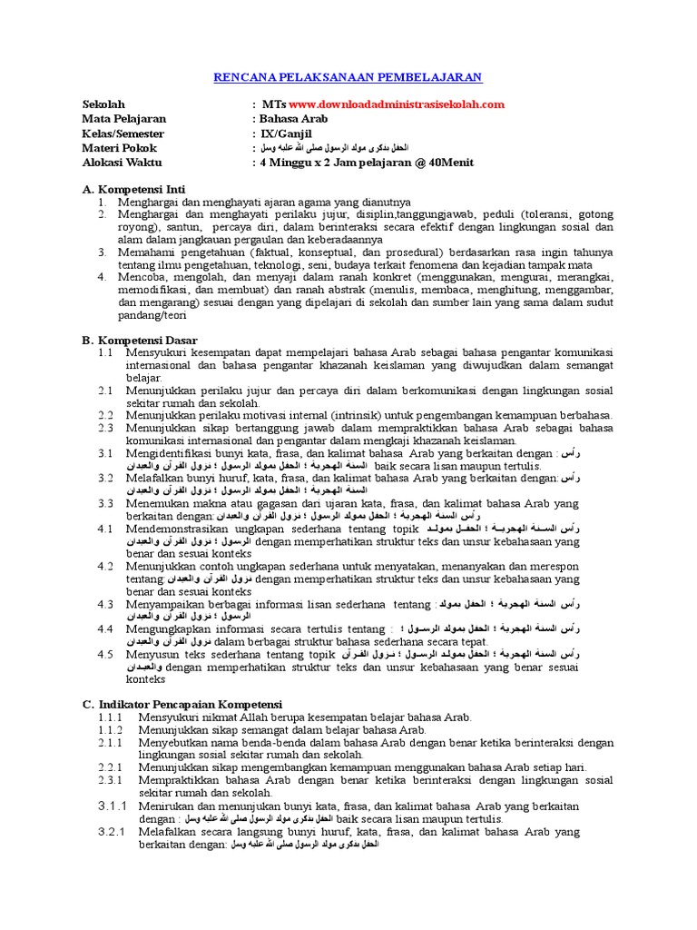 Contoh Rpp Bahasa Arab 1 Lembar Guru Ilmu Sosial