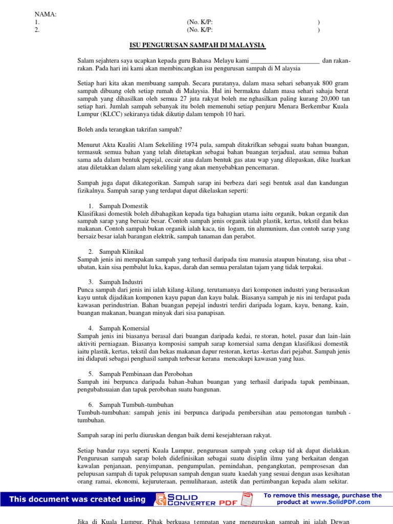 Beliau berkata jika tidak ditangani situasi itu boleh menjejaska n kesihatan manusia sama ada melalui pencemaran air atau. Tidak dapat dinafikan bahawa pembangunan adalah amat penting untukkemajuan sesebuah negara. Pelaksanaan perkara ini berdasarkan peraturan di bawah akta pengurusan sisa pepejal dan pembersihan awam 2007 akta 672. Uploaded by anonymous zwiopjvm4o.