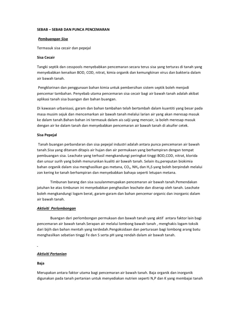 Pengenalan Tentang Pencemaran Alam Sekitar Pdf Document