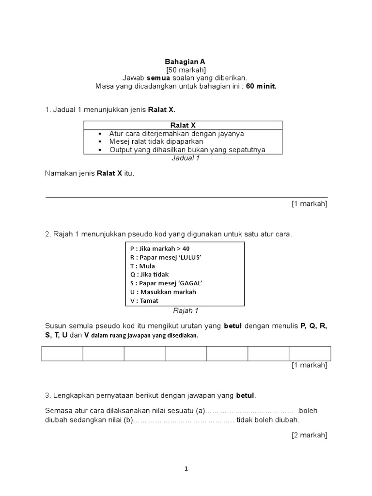 Soalan Ask Tingkatan 1 Pertengahan Tahun Terengganu X