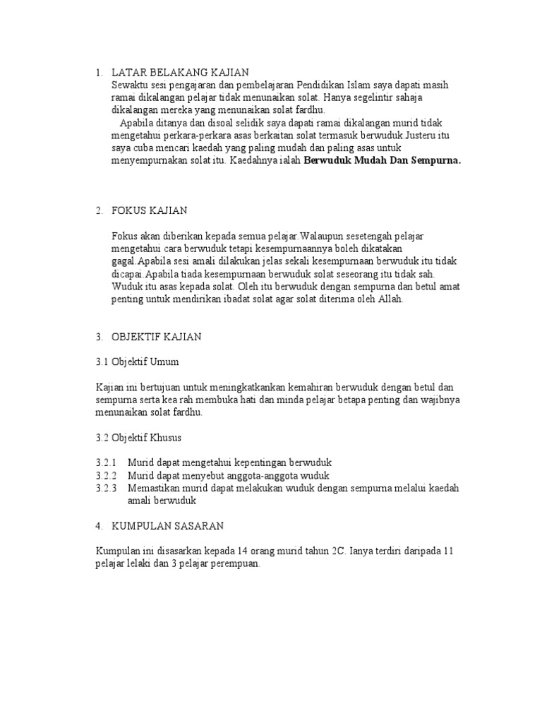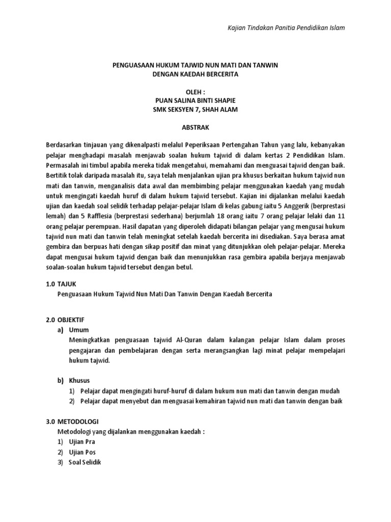 Contoh Kajian Tindakan Pendidikan Islam