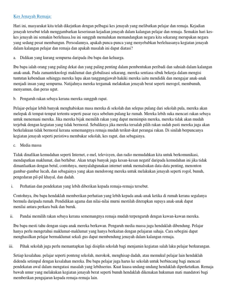 Karangan Jenayah Dalam Kalangan Remaja