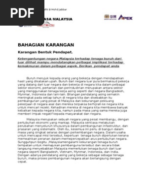 Contoh Karangan Bm Kesan Kemasukan Pendatang Asing Dan Cara Mengawal Kemasukkannya Wattpad