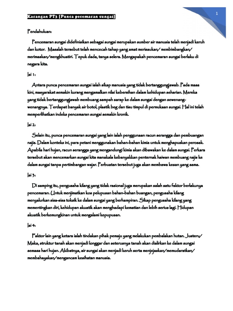 Karangan Pt3 Punca Pecemaran Sungai