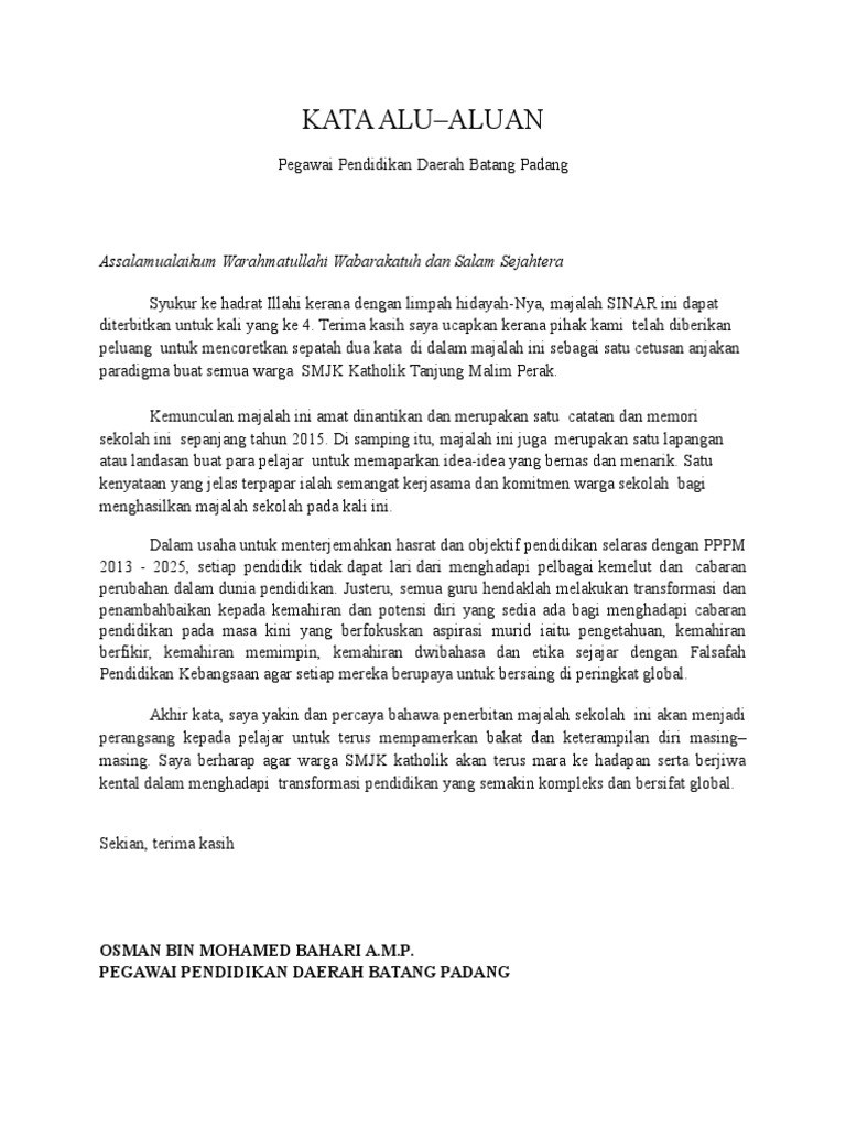 Kata Alu Aluan Majalah Sekolah 2018 Menteri Pendidikan Malaysia