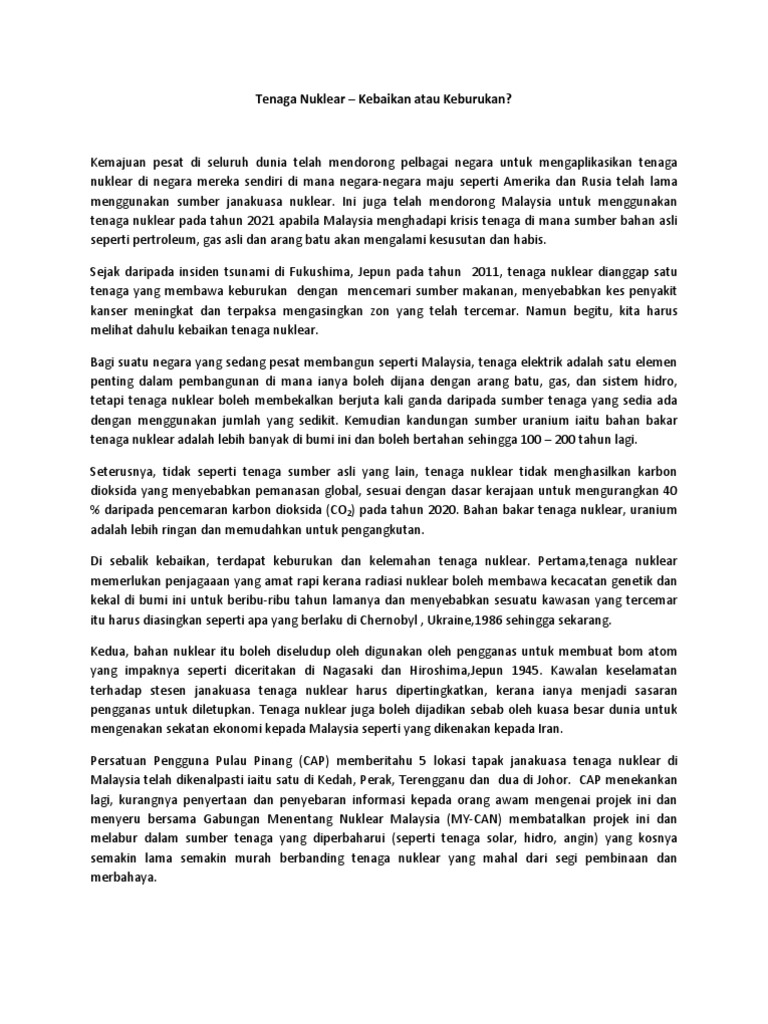 Tenaga Nuklear Kebaikan Atau Keburukan