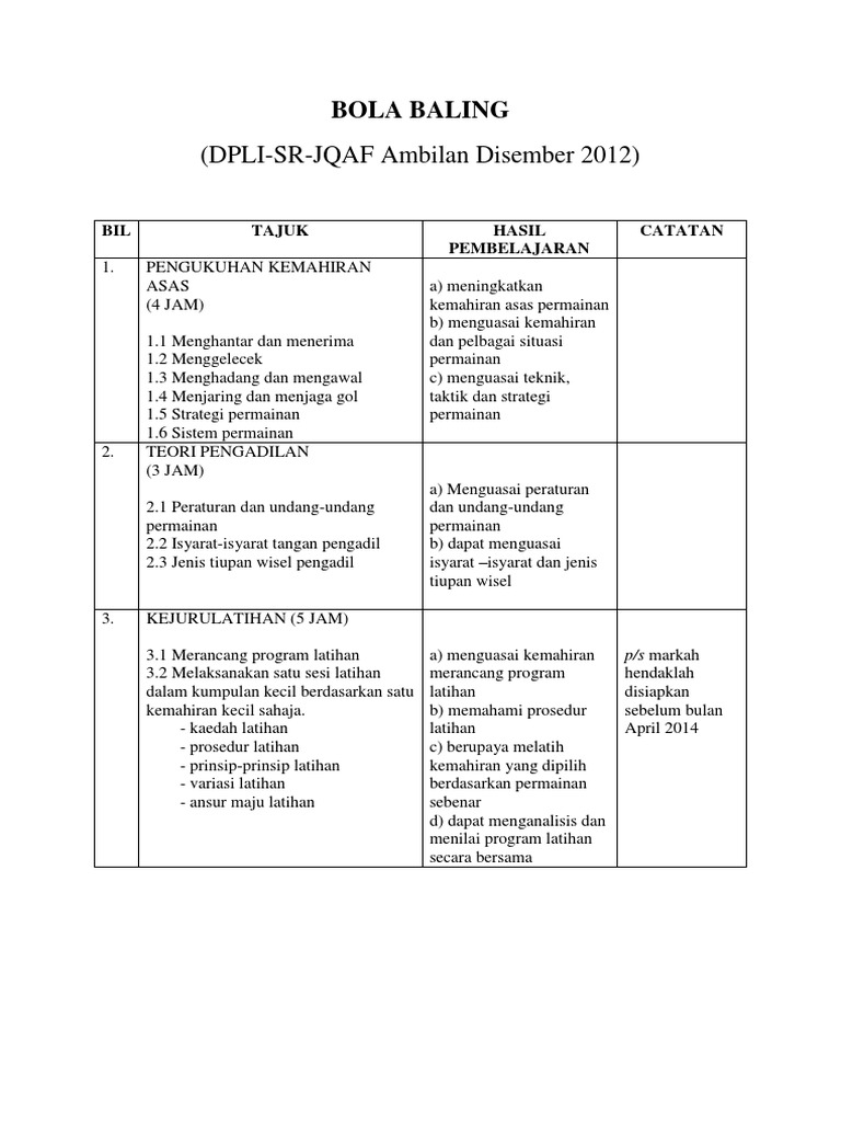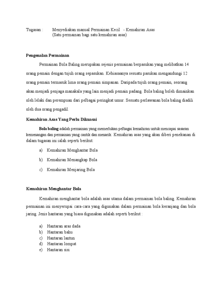 Kemahiran Asas Dalam Bola Baling Docx Document