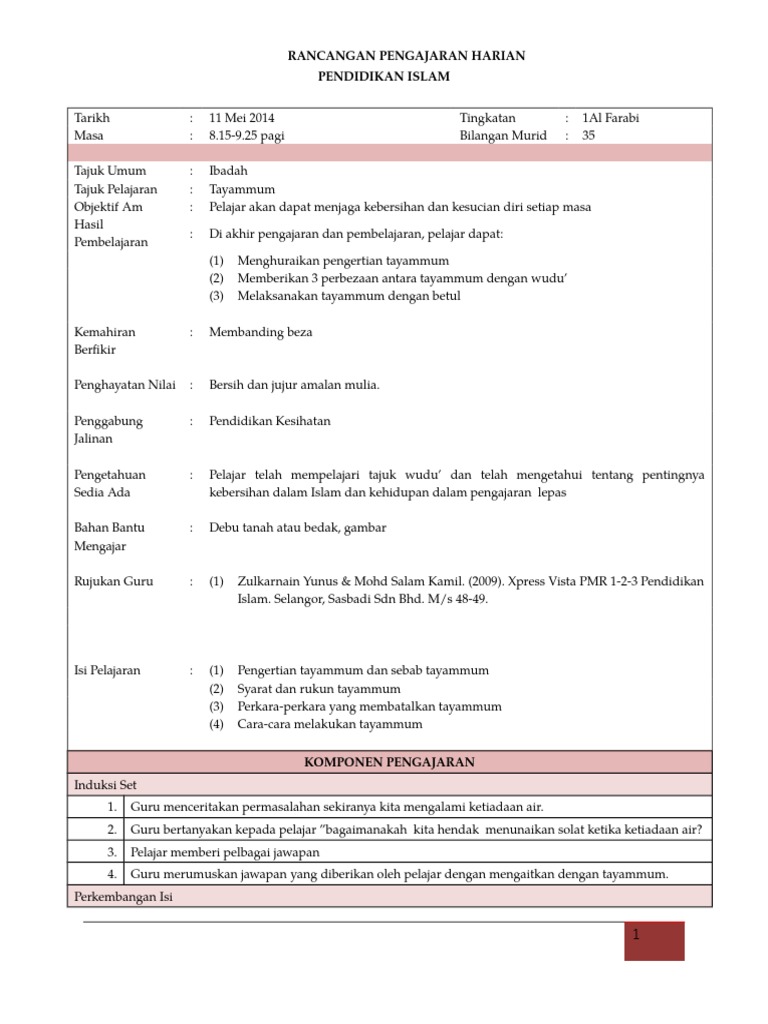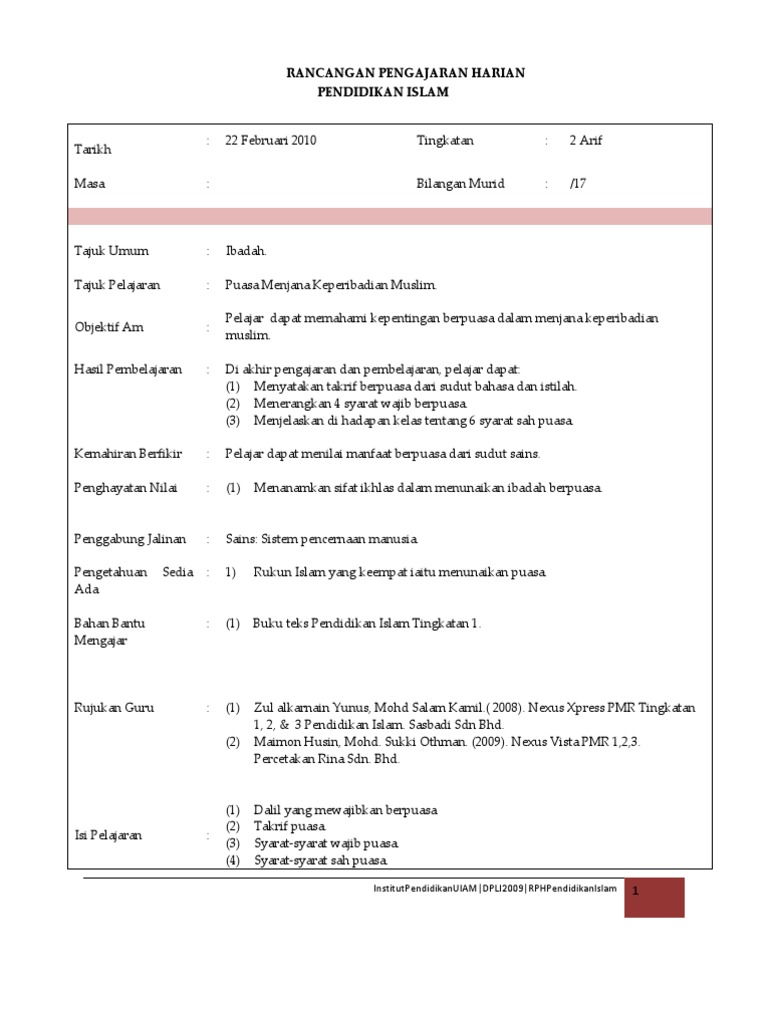 Pdf Rancangan Pengajaran Harian Pendidikan Agama Islam Lin Lasim Academia Edu