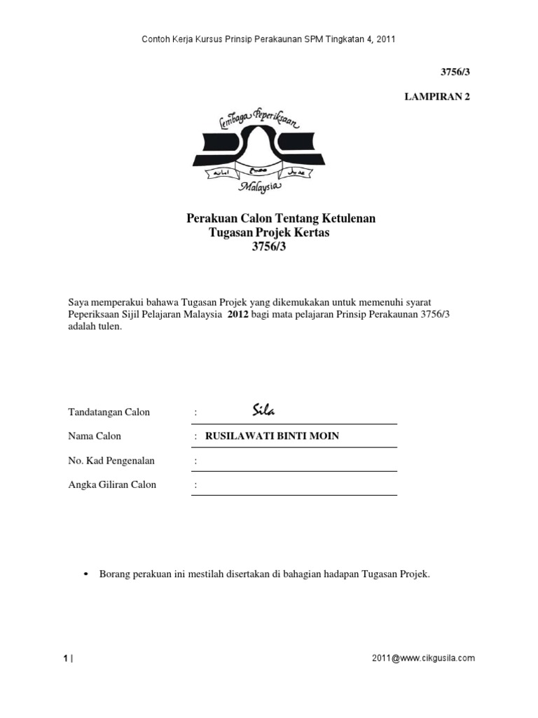 Contoh Kerja Kursus P Akaun Tahun 2011