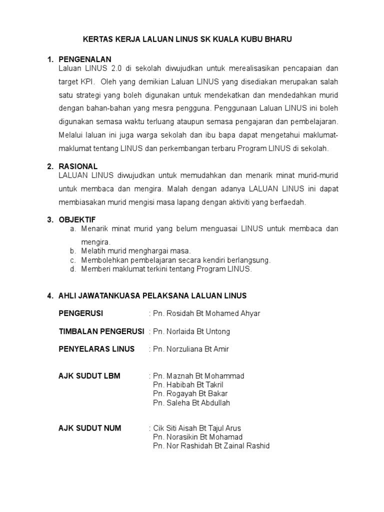 Doc Kertas Kerja Program Linus Sk Mengkuang Ppd Spu T Academia Edu