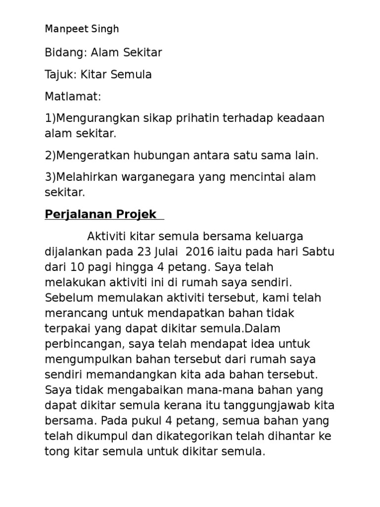 Kertas Laporan Ringkas Projek Kitar Semula Docx