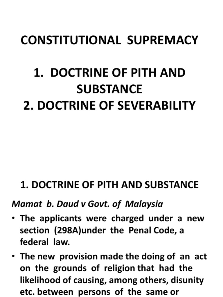 Constitutional Supremacy 1 Doctrine Of Pith And Substance 2 Doctrine Of Severability Constitution Ethical Principles