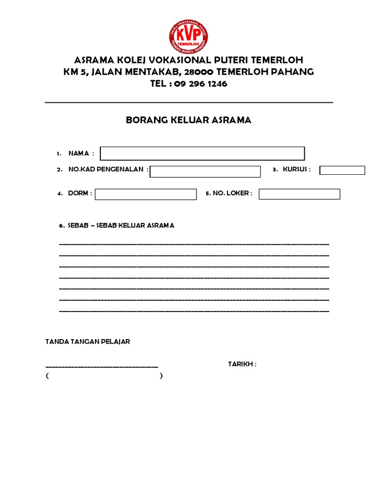 Borang Keluar Asrama