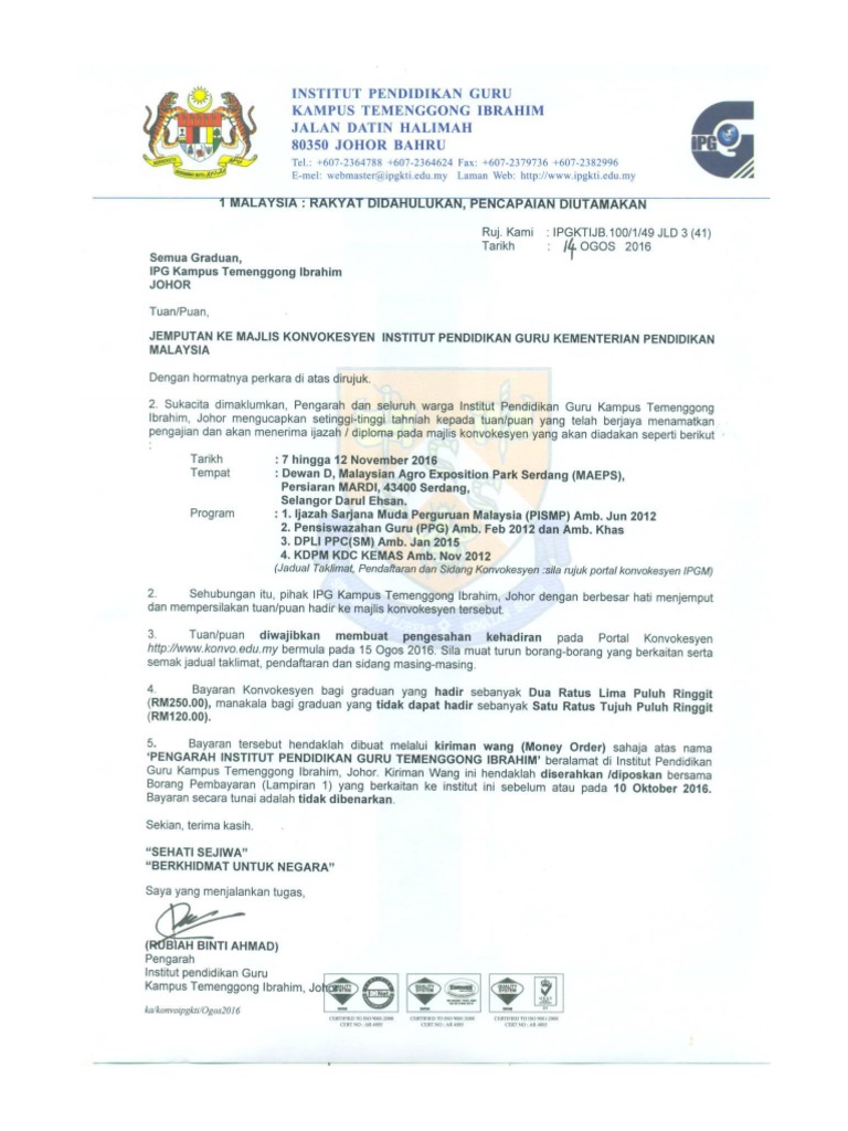 Majlis Konvokesyen 7 12 Nov 2016 Semakan Graduan Ipg Unit Peperiksaan Dan Penilaian