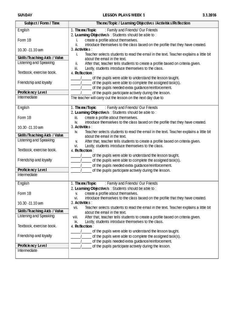 Regular Lesson Plan Form 1 English Form 1 Kssm Lesson Plan 2017 In Map Mizfo S Ota Tech