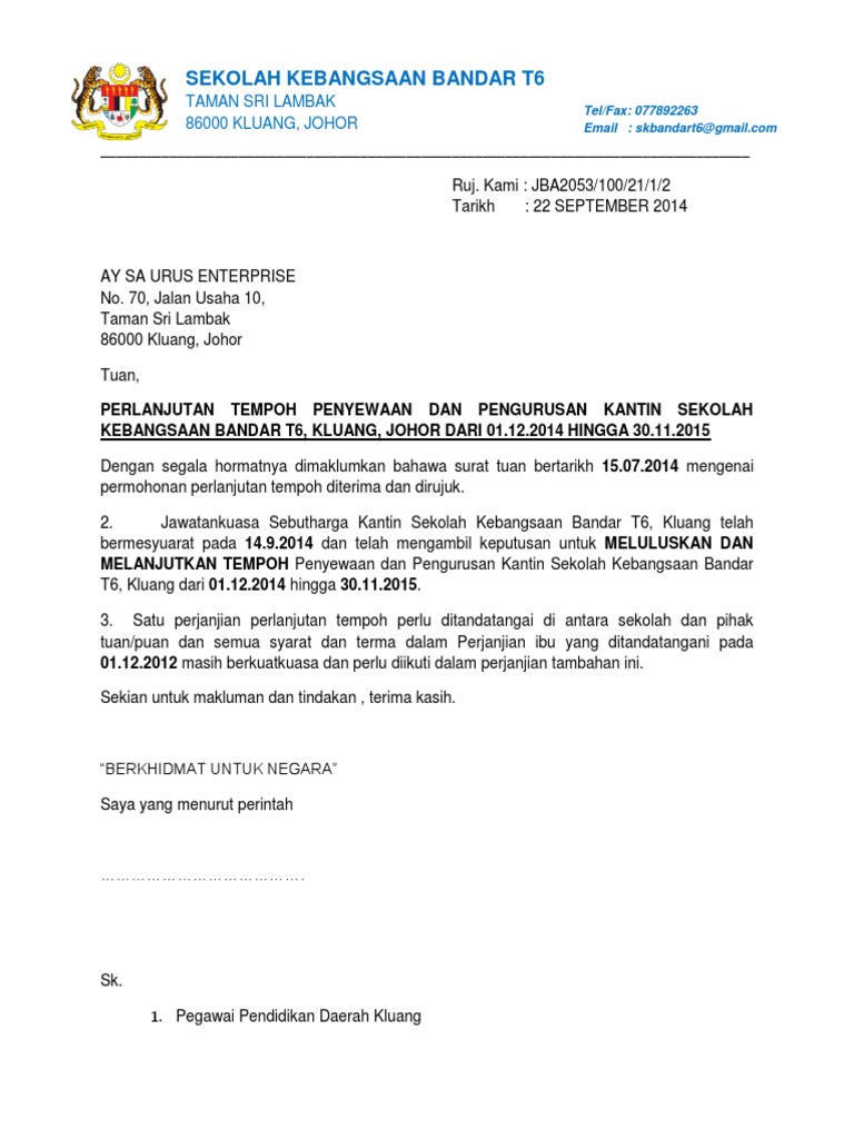 Perlanjutan Perjanjian Penyewaan Dan Pengurusan Kantin Sekolah Autosaved
