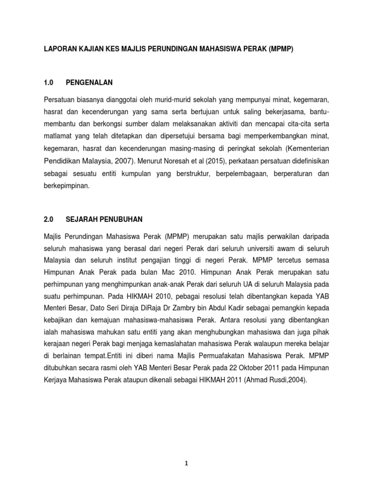 Laporan Kajian Kes Majlis Perundingan Mahasiswa Perak
