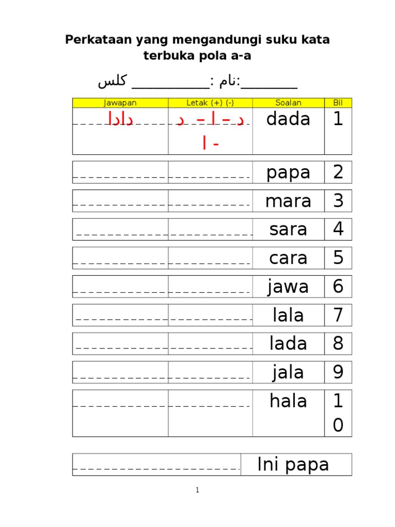 Contoh Soalan Jawi Suku Kata Terbuka U Soalan