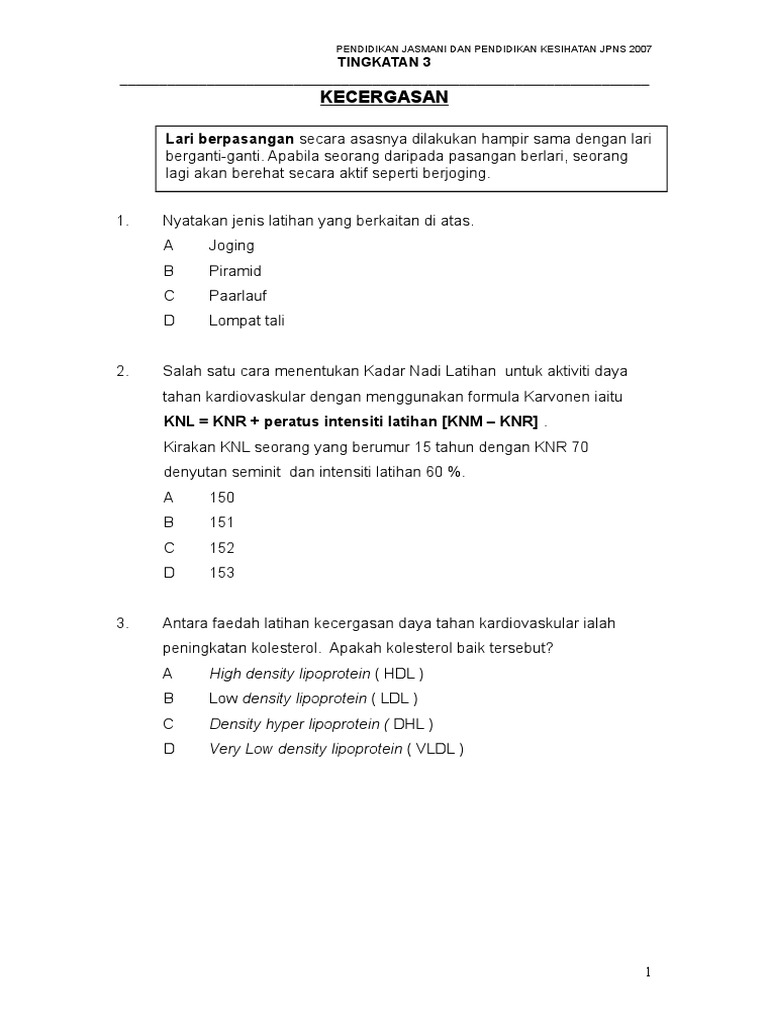 Contoh Soalan Pendidikan Jasmani Tahun 3 Kssr 7 Descargar