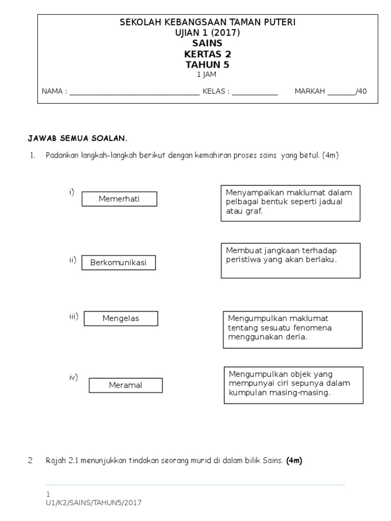 Soalan Sains Tahun 5 Kemahiran Saintifik Lamaran M