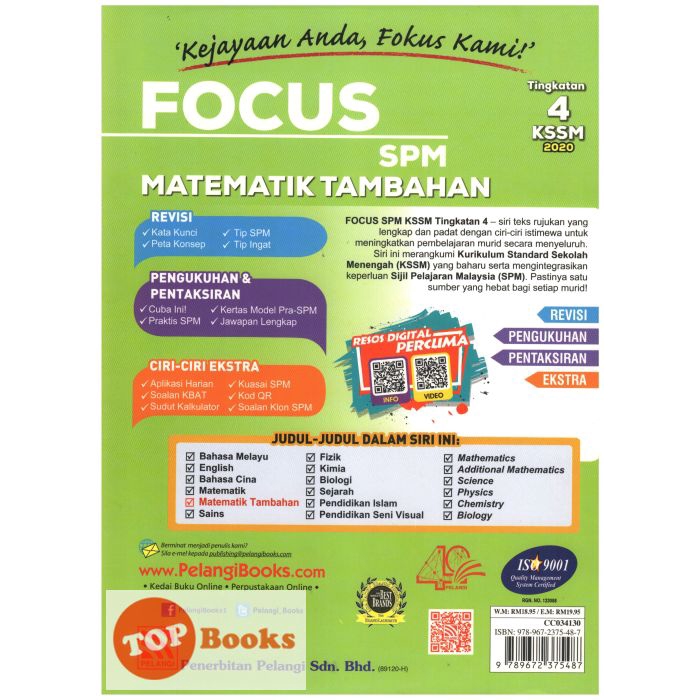 Topbooks Pelangi Focus Spm Matematik Tambahan Kssm Tingkatan 4 2020 Shopee Malaysia