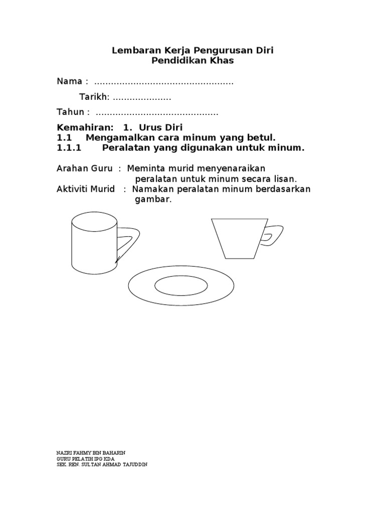 Lembaran Kerja Pengurusan Diri Pendidikan Khas