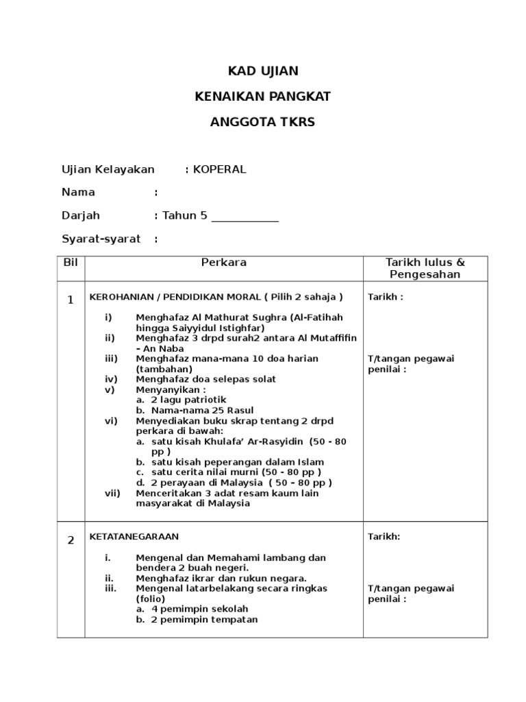 Kad Ujian Kenaikan Pangkat Anggota Tkrs