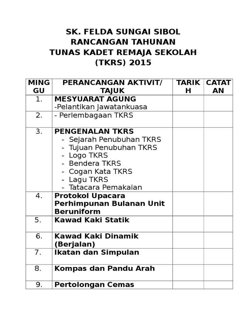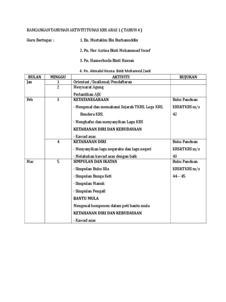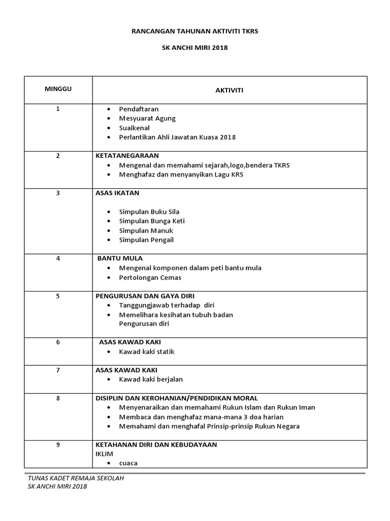 Rancangan Tahunan Aktiviti Tkrs Tahap 1