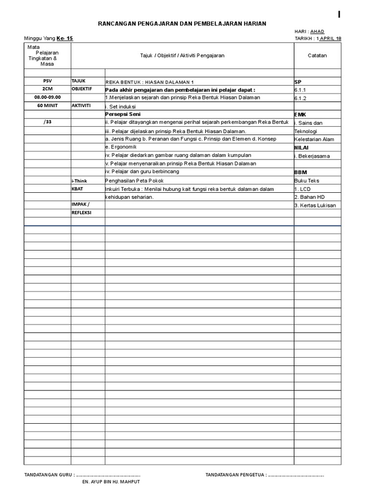 Contoh Rph Psv T2 Hiasan Dalaman Kssm 2